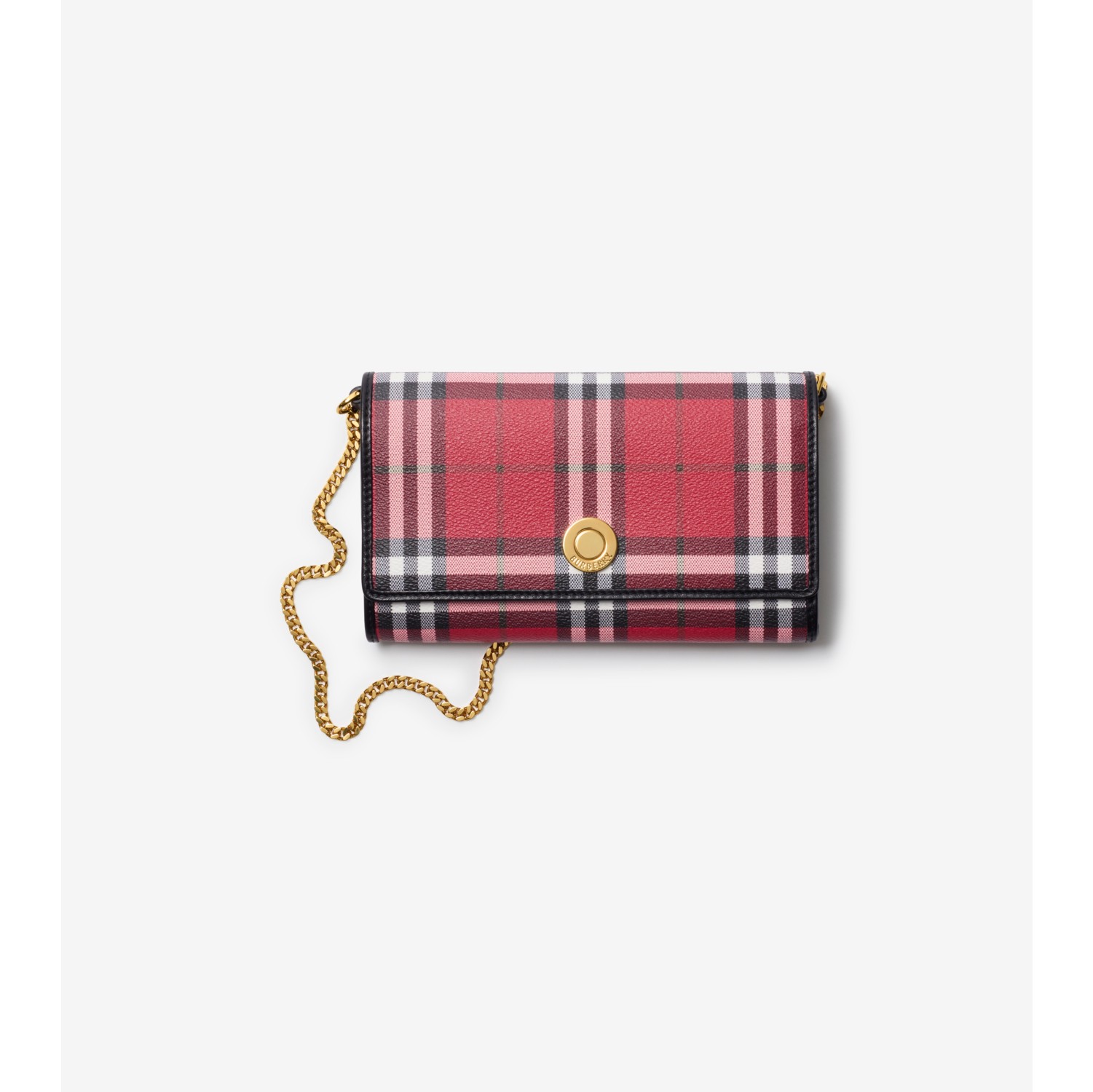 Check Chain Strap Wallet in Post red - Women | Burberry® Official