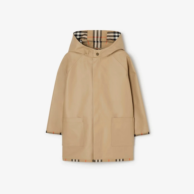 A hooded coat made from cotton woven with the Burberry Check in signature sand beige. The style features a logo-engraved press stud and concealed zip for easy fastening. Press-stud and zip closure Front jet pockets