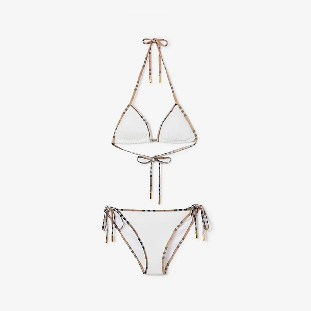 Check Trim Bikini in White - Women, Nylon | Burberry® Official
