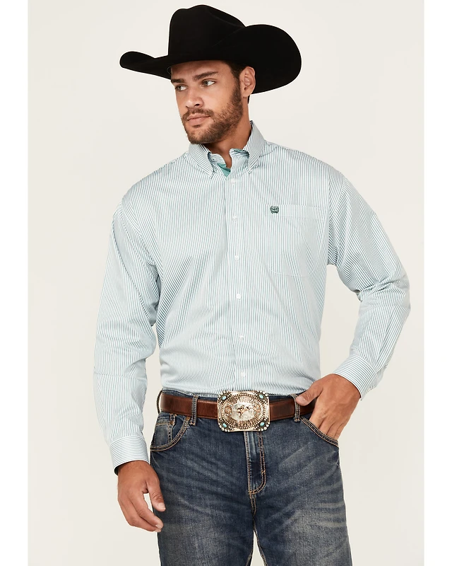 Cinch Men's Tencel Mini Striped Long Sleeve Button-Down Western Shirt