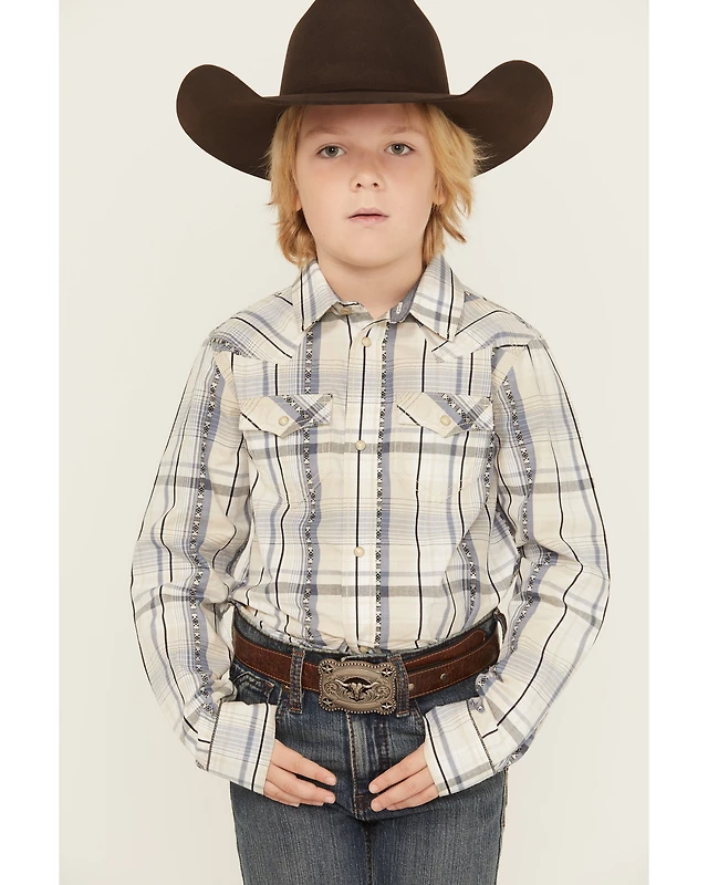 Cody James Boys' Rowdy Plaid Print Long Sleeve Snap Western Shirt