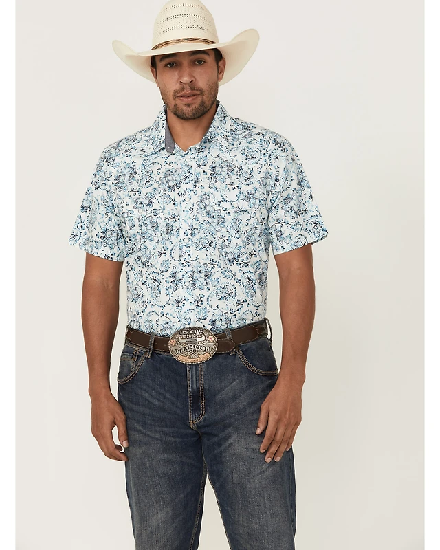 Cody James Men's Frontier Threads Floral Paisley Print Short Sleeve Snap Western Shirt
