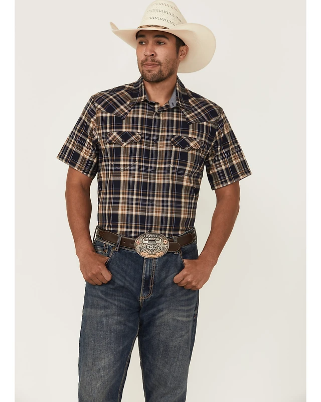 Cody James Men's Rustic Rodeo Plaid Print Short Sleeve Snap Western Shirt