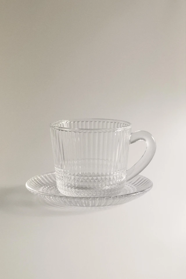 BOROSILICATE GLASS COFFEE CUP AND SAUCER