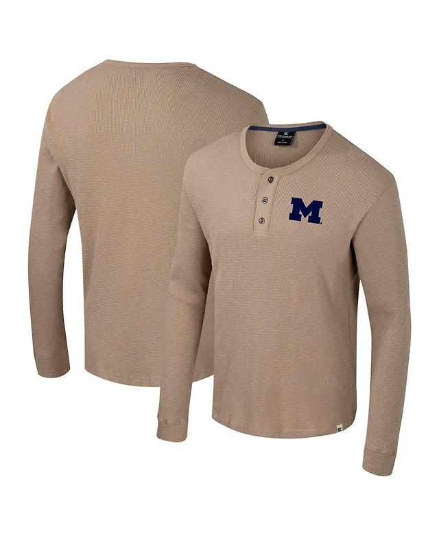 Colosseum Men's Tan Michigan Wolverines Great Outdoors Henley Long Sleeve Shirt