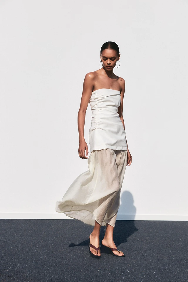 COMBINATION STRAPLESS MIDI DRESS