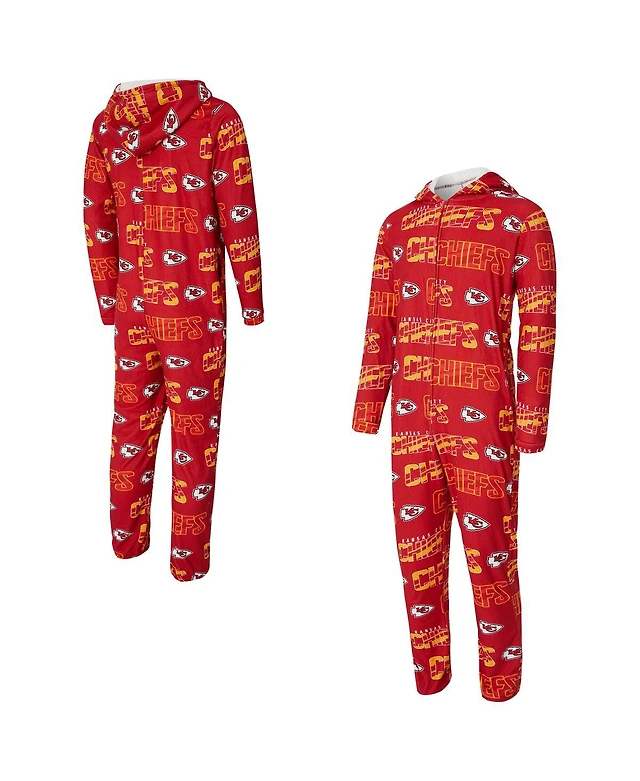 Concept Sport Men's Red Kansas City Chiefs Shuffle All-Over-Print Microfleece Full-Zip Union Suit