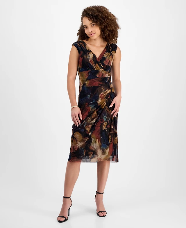 julia jordan Women's Printed V-Neck Sleeveless Gown