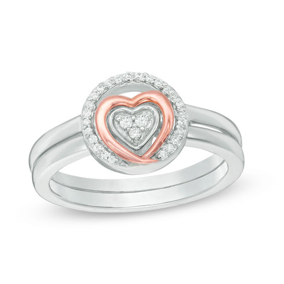 Convertibilities 1/10 CT. T.w. Diamond Heart Three-in-One Ring in Sterling Silver and 10K Rose Gold