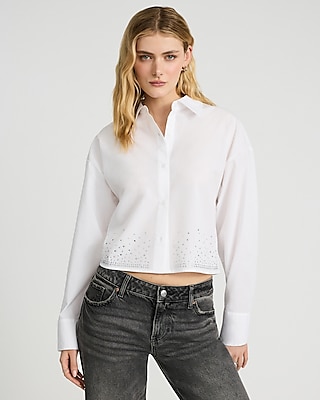 Cotton Poplin Embellished Hem Cropped Shirt in Bloomington, MN