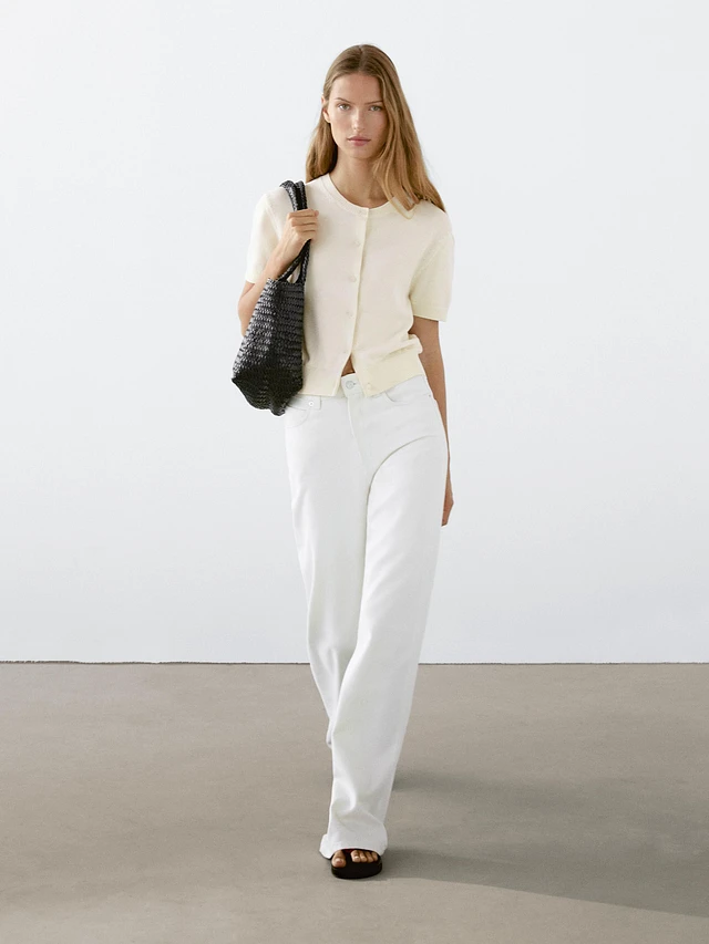 Cotton short sleeve knit cardigan