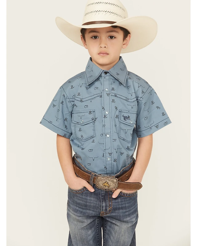 Cowboy Hardware Boys' Branding Iron Short Sleeve Snap Western Shirt