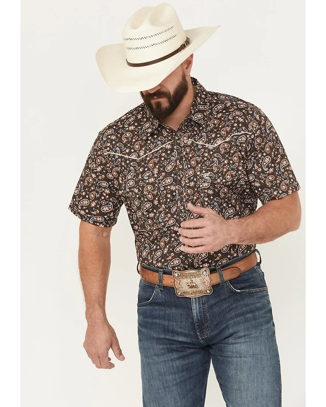 Cowboy Hardware Men's Paisley Print Short Sleeve Snap Stretch Western Shirt