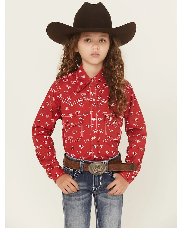 Cowgirl Hardware Girls' Brand Iron Print Long Sleeve Snap Stretch Western Shirt