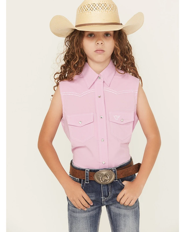 Cowgirl Hardware Girls' Solid Sleeveless Snap Western Shirt