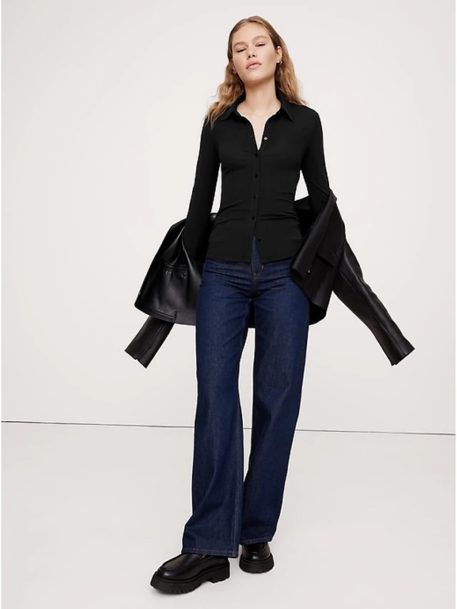 Silky Cotton Long-Sleeve Button-Down Shirt