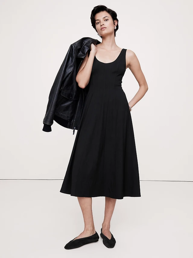 Crepe Scoop-Neck Midi Dress