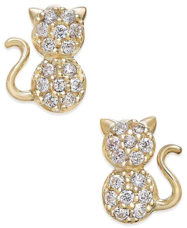 Cubic Zirconia Kitty Cat Stud Earrings in 10k Gold