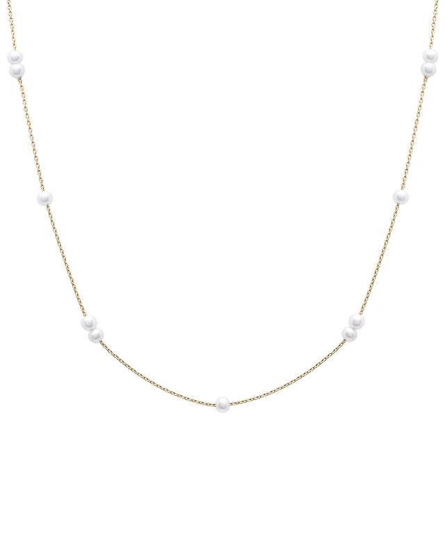 Cultured Freshwater Pearl (3mm) Station 17" Collar Necklace in 14k Gold-Plated Sterling Silver