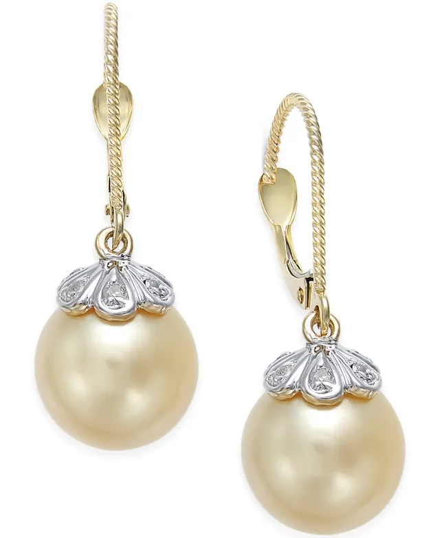 Cultured Golden South Sea Pearl (9mm) & Diamond (1/10 ct. t.w.) Drop Earrings in 14k Yellow Gold