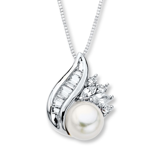 Cultured Pearl & White Lab-Created Sapphire Necklace Sterling Silver 18"