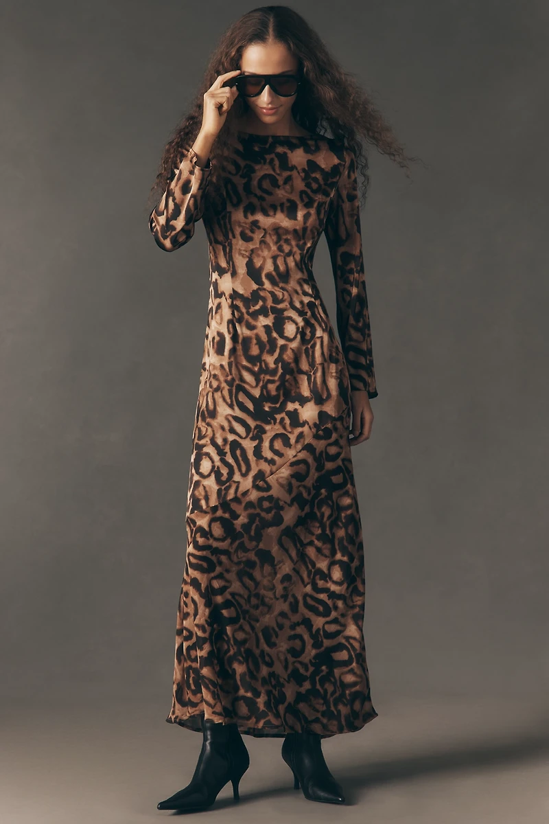 Curaae Zali Long-Sleeve Boat-Neck Maxi Dress
