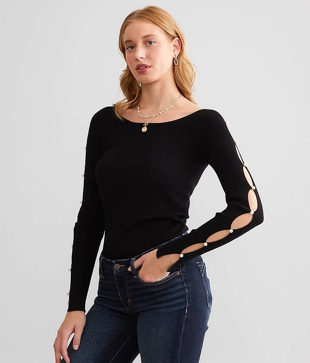 Cut-Out Faux Pearl Top
