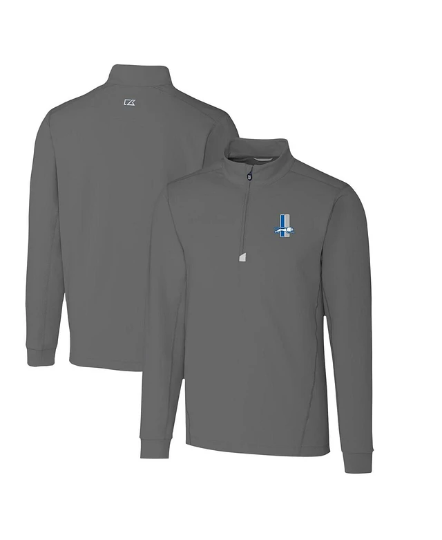 Cutter & Buck Men's Steel Detroit Lions Throwback Logo Traverse Stretch Quarter-Zip Pullover Top