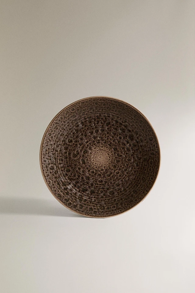 CERAMIC DESSERT PLATE WITH CHECKED RIM