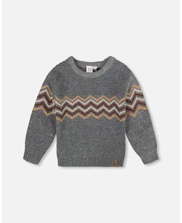 Deux par Deux Baby Boys Knitted Jacquard Sweater Dark Gray