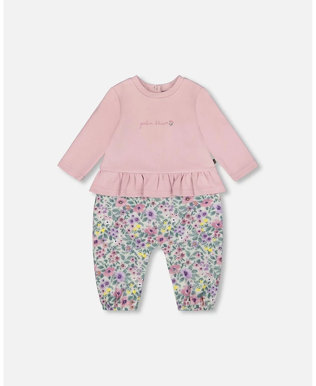 Deux par Baby Girl Cotton Bi-Material Tunic and Leggings Set Neutral Purple