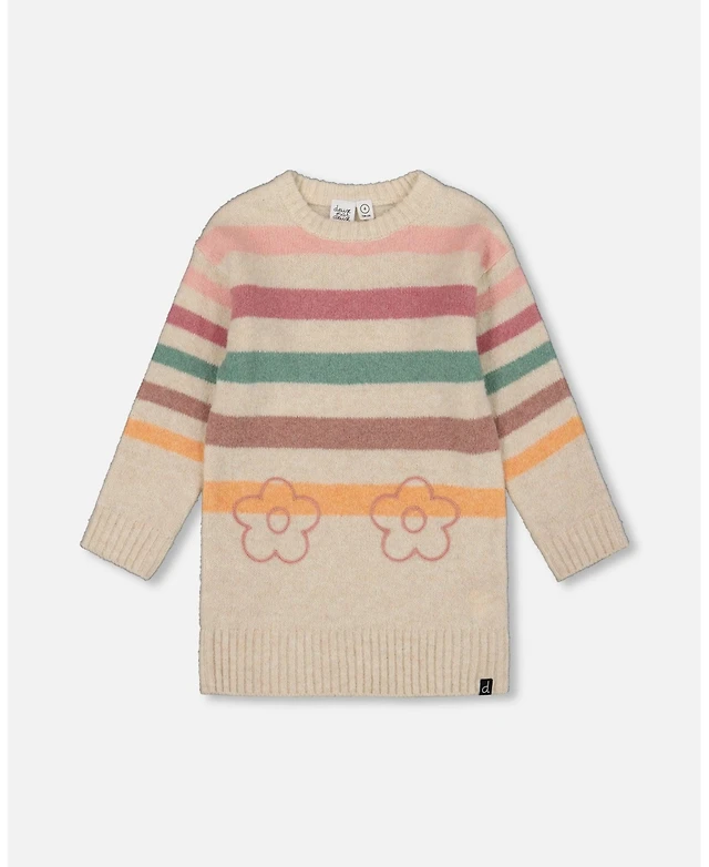 Deux par Girl Knitted Tunic Off-White with Stripes - Toddler|Child