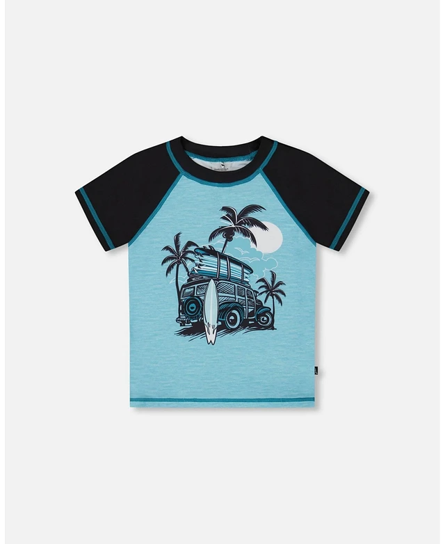 Deux par Deux Boys Short Sleeve Rashguard Light Blue And Black