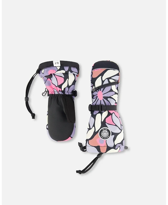 Deux par Deux Girl Winter Mittens Teknik Black Retro Flower Print - Child