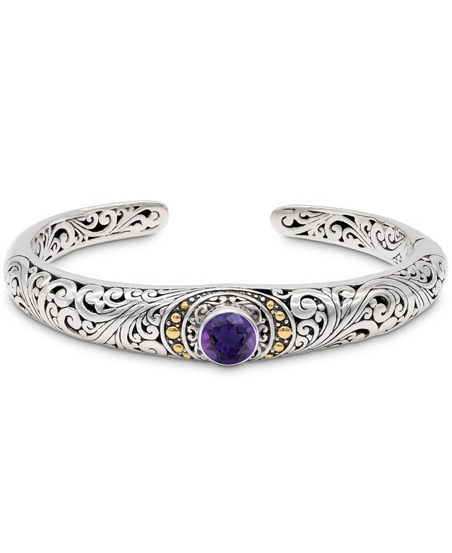 Devata Amethyst & Bali Filigree Cuff Bracelet in Sterling Silver and 18K Gold Accents, Small