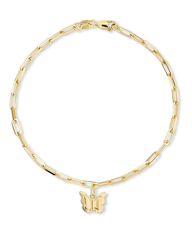 Devata Butterfly Charm with Paperclip Chain Bracelet in 14K Gold, 7.5 in, approx. 3.1 grams.