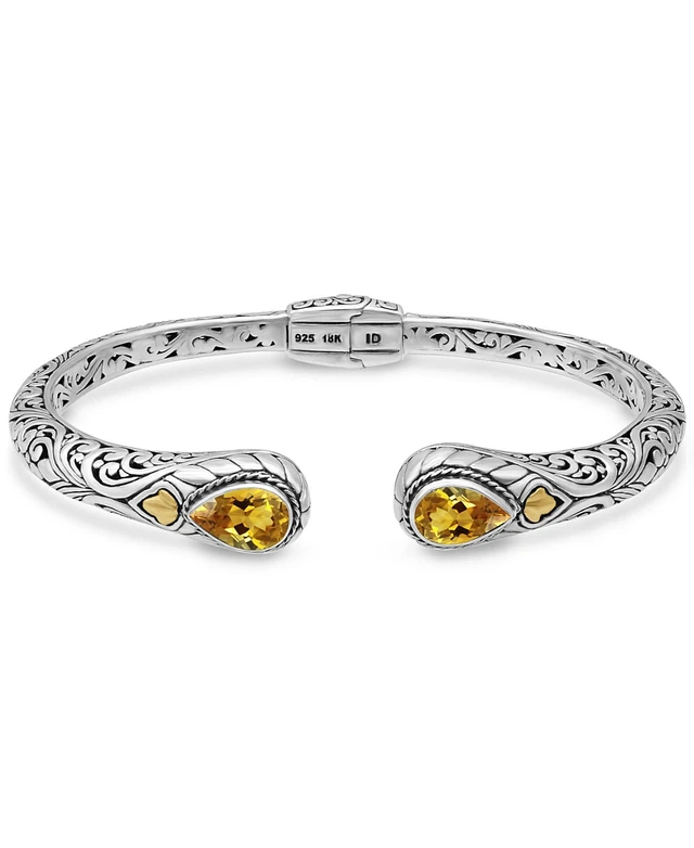 Devata Citrine & Bali Cuff Bracelet in Sterling Silver and 18K Gold Accents