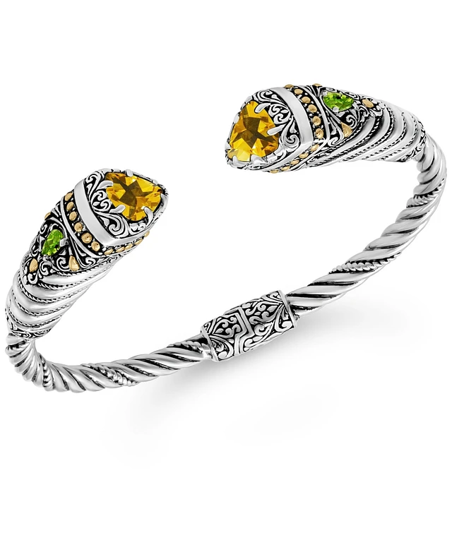 Devata Swiss Blue Topaz, Peridot, Citrine & Bali Ubud Cuff Bracelet in Sterling Silver and 18K Gold