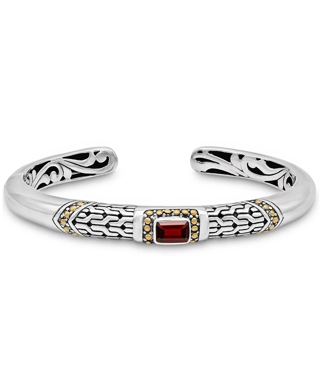 Devata Garnet & Bali Cuff Bracelet in Sterling Silver and 18K Gold Accents, Medium