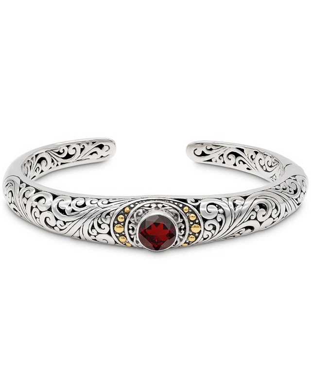 Devata Garnet & Bali Filigree Cuff Bracelet in Sterling Silver and 18K Gold Accents