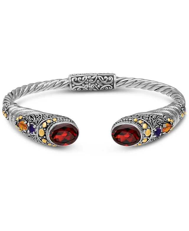 Devata Garnet & Bali Jimbaran Cuff Bracelet in Sterling Silver and 18K Gold