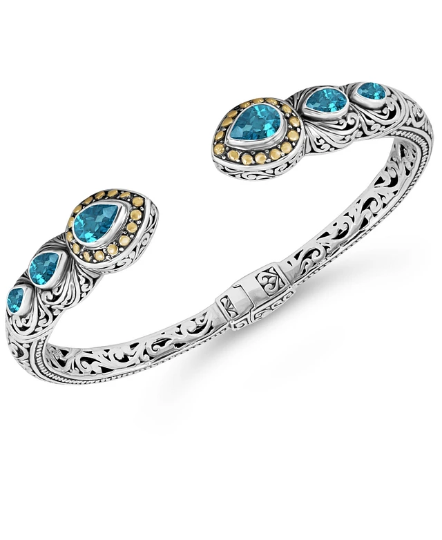 Devata London Blue Topaz & Bali Ubud Cuff Bracelet Sterling Silver and 18K Gold