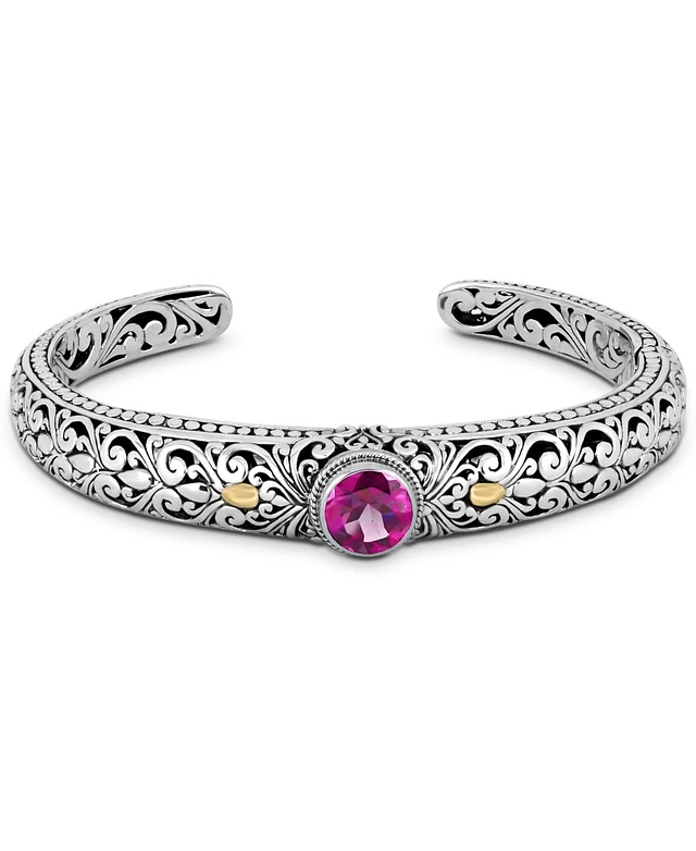 Devata Pink Topaz & Bali Filigree Cuff Bracelet in Sterling Silver and 18K Gold Accents, Medium