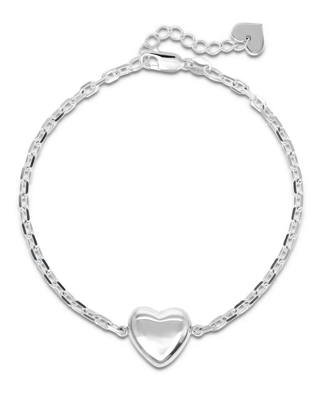 Devata Puffy Heart Chain Bracelet in Sterling Silver, 7.0 in adj to 8.0 in