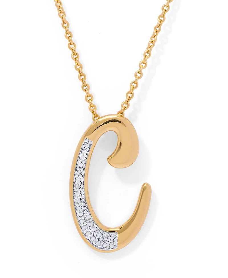 Diamond Accent Initial Pendant Necklace 18" Gold Plate or Rose