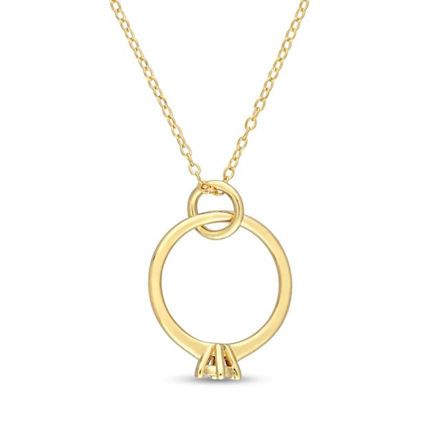 Diamond Accent Ring Charm Pendant in Sterling Silver with Yellow Rhodium