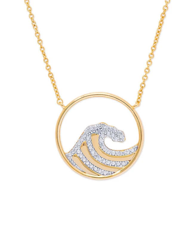 Diamond Accent Sand Dollar Pendant 18" Necklace in Gold Plate