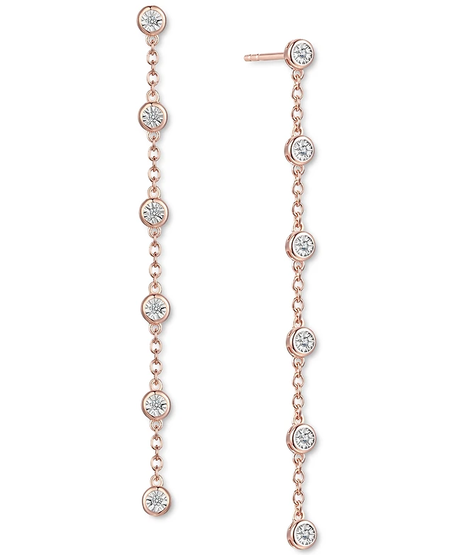 Diamond Bezel Linear Drop Earrings (1/10 ct. t.w.) Sterling Silver, 14k Gold-Plated Silver or Rose
