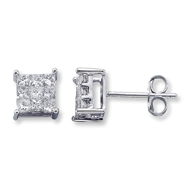 Previously Owned Diamond Earrings 1 ct tw Princess-Cut 14K White Gold