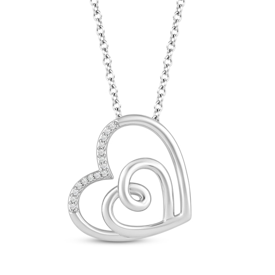 Diamond Heart Necklace 1/10 ct tw Round-cut Sterling Silver 18"